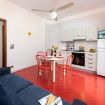 OUTSIDE: Large outdoor area overlooking the entrance, furnished with table and chairs, relaxing garden set. The two-room apartment remains in a residential area facing the sea, with private access only pedestrian guarantee of privacy, tranquility and security.