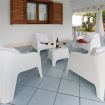 INTERNO: Da un ampio patio esterno si accede all'area living/soggiorno con zona pranzo e cucina in muratura che si affaccia sulla veranda con piscina. Due camere da letto matrimoniali e due bagni con doccia. Divano letto nel disimpegno.