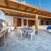 INTERNO: Ingresso su un'ampia zona living/soggiorno con divano letto. Gli ambienti si sviluppano esclusivamente al piano terra con due camere da letto matrimoniali, bagno con doccia e cucina indipendente. Punto di forza la grande veranda esterna, sul fronte posteriore, attrezzata con tavolo e sedie, set relax da giardino, barbecue in pietra, doccia esterna.